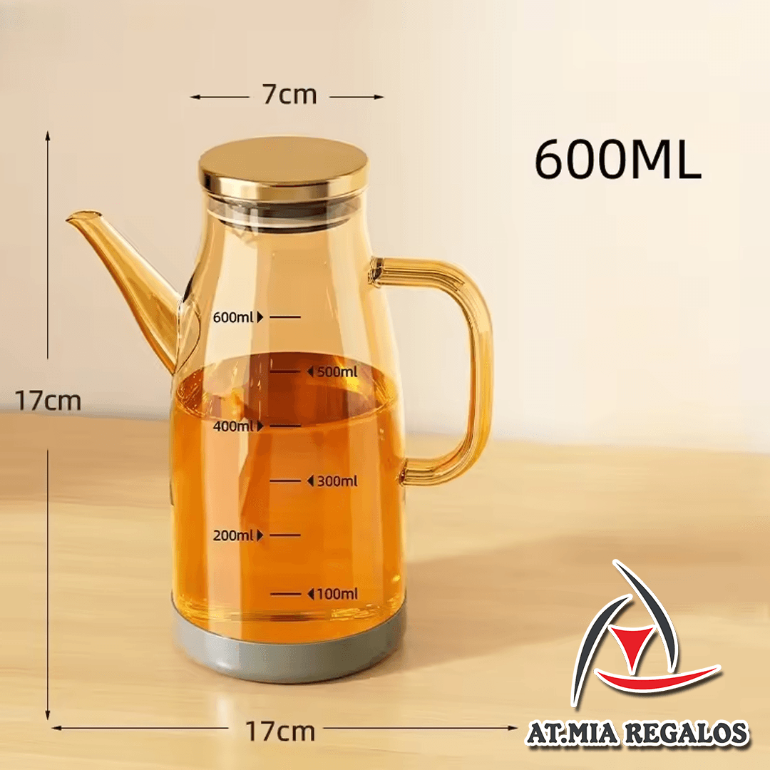 Aceitero de Vidrio Báscula Para Tetera Aceite Ámbar 600ml