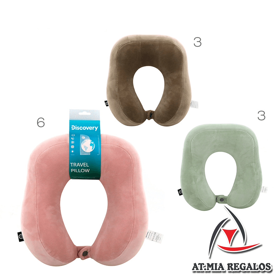 Almohada de viaje Discovery, confeccionada en 100% Poliester. Con diseño ergonómico y botón para abrochar. Se adapta a la forma de cuello, manteniéndolo derecho y protegiéndote de las lesiones cervicales.