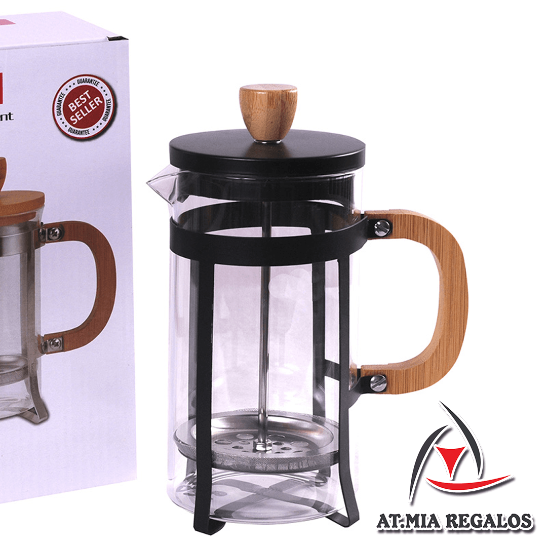 Cafetera Embolo De Vidrio Prensa Francesa Negro Mango De Madera 800ml