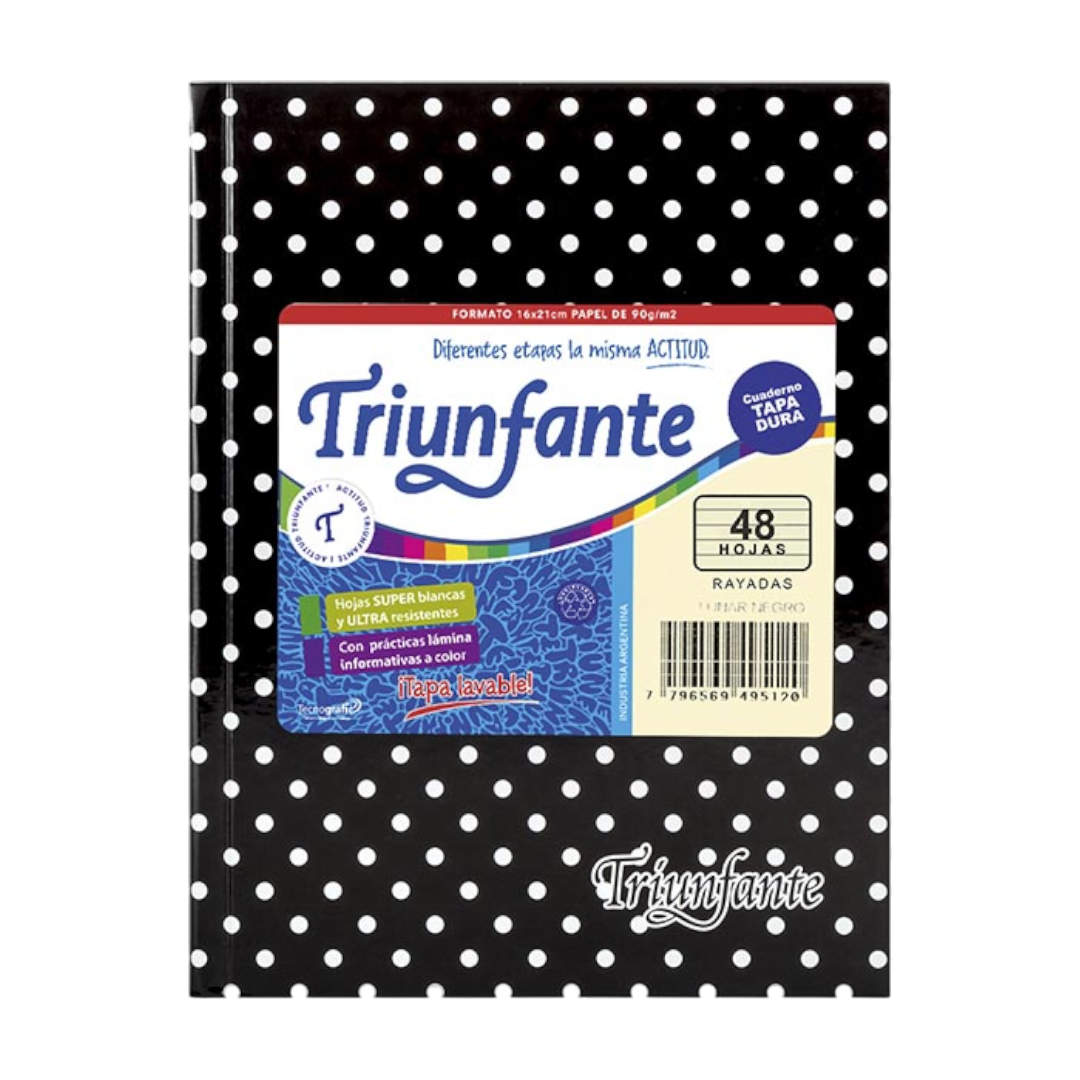 Cuaderno Triunfante N1 Lunares 48 Hojas Rayadas Negro