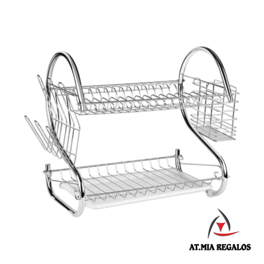 Escurridor de Platos Cromado Dos Pisos c/Escurridor de Cubiertos Grande
