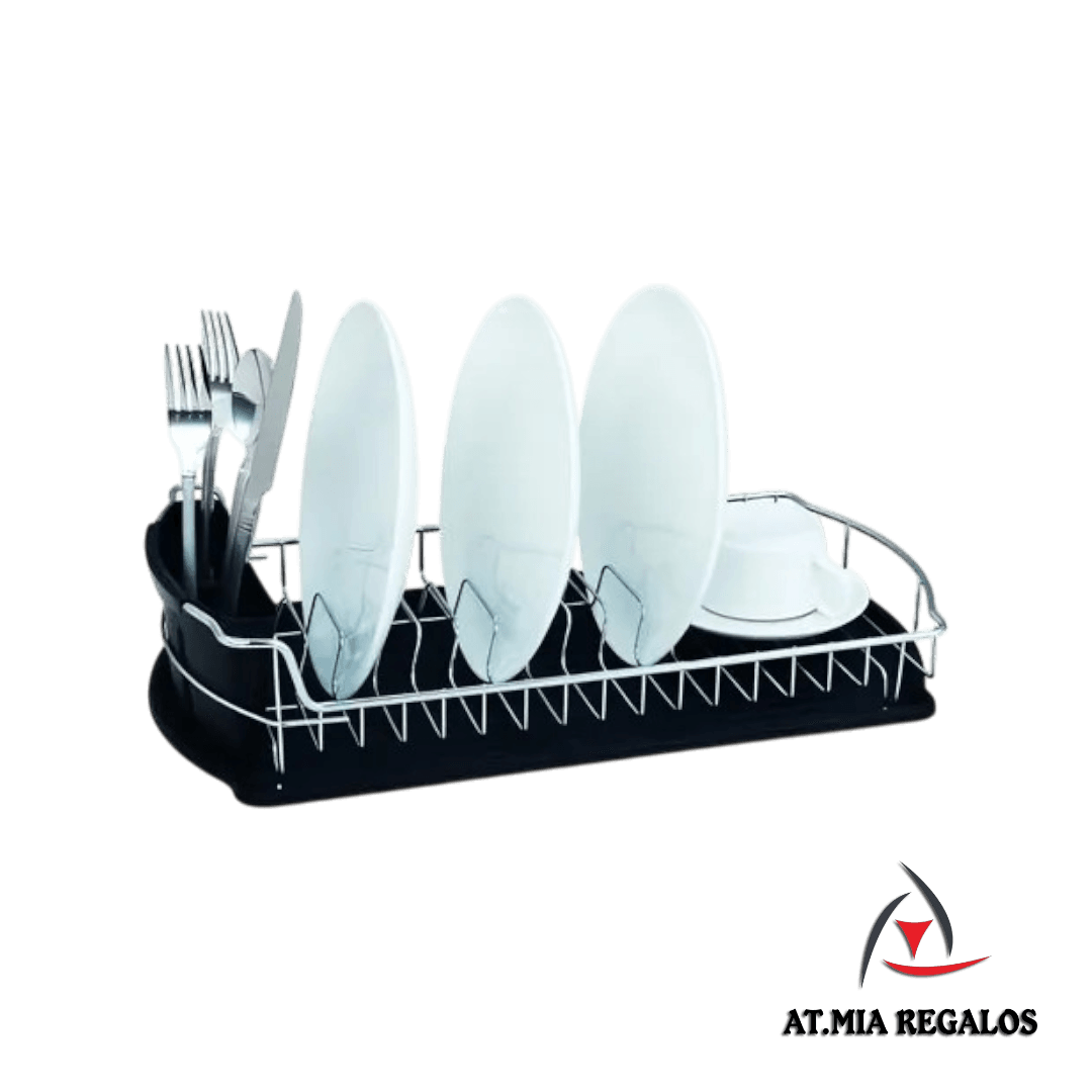 Escurridor de Platos Cromado Simple c/Escurridor de Cubiertos C/Bandeja Plástica Negra