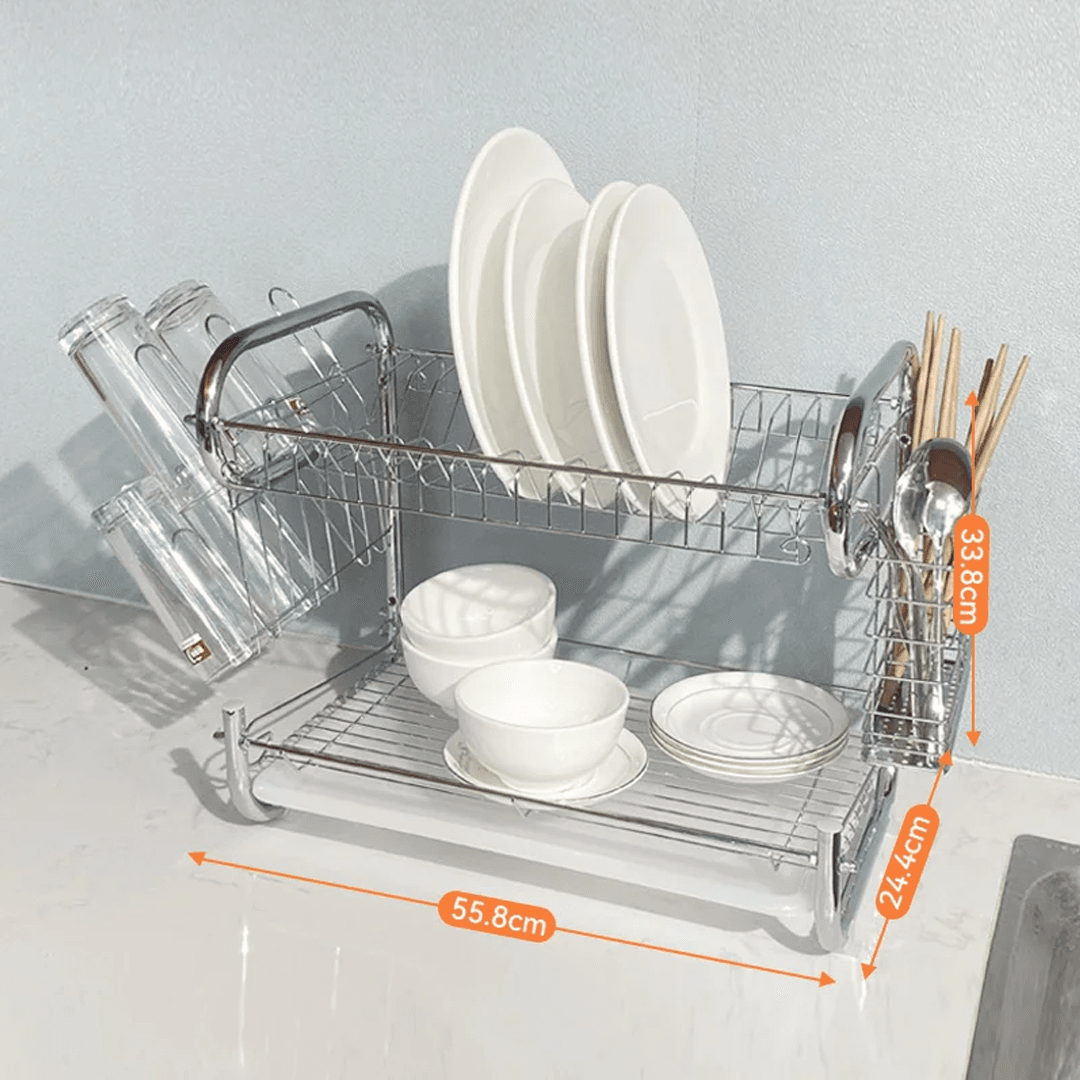 Escurridor de Platos Vajilla Cromado Dos Pisos c/Escurridor de Cubiertos