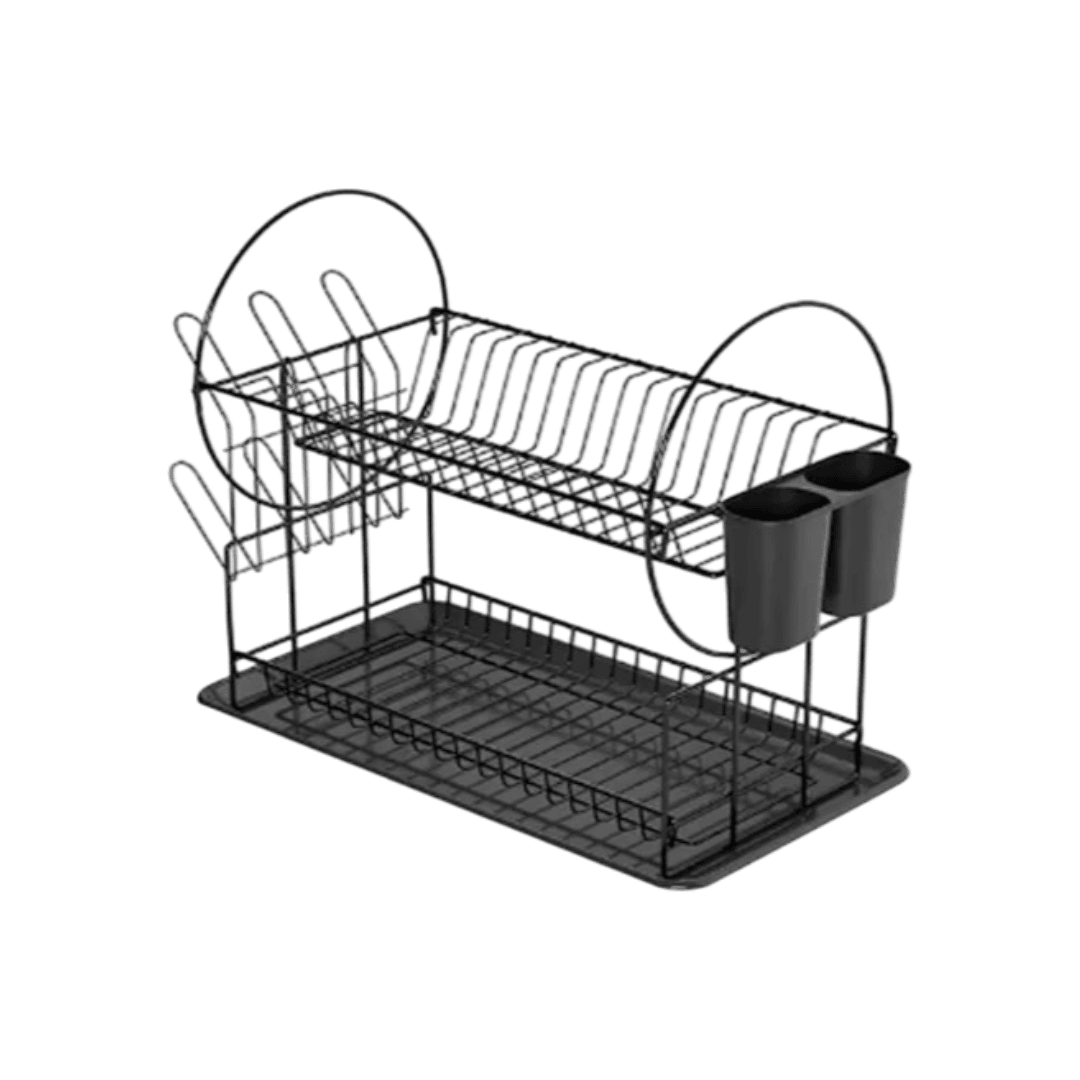 Escurridor de Platos Vajilla Negro Dos Pisos c/Escurridor de Cubiertos