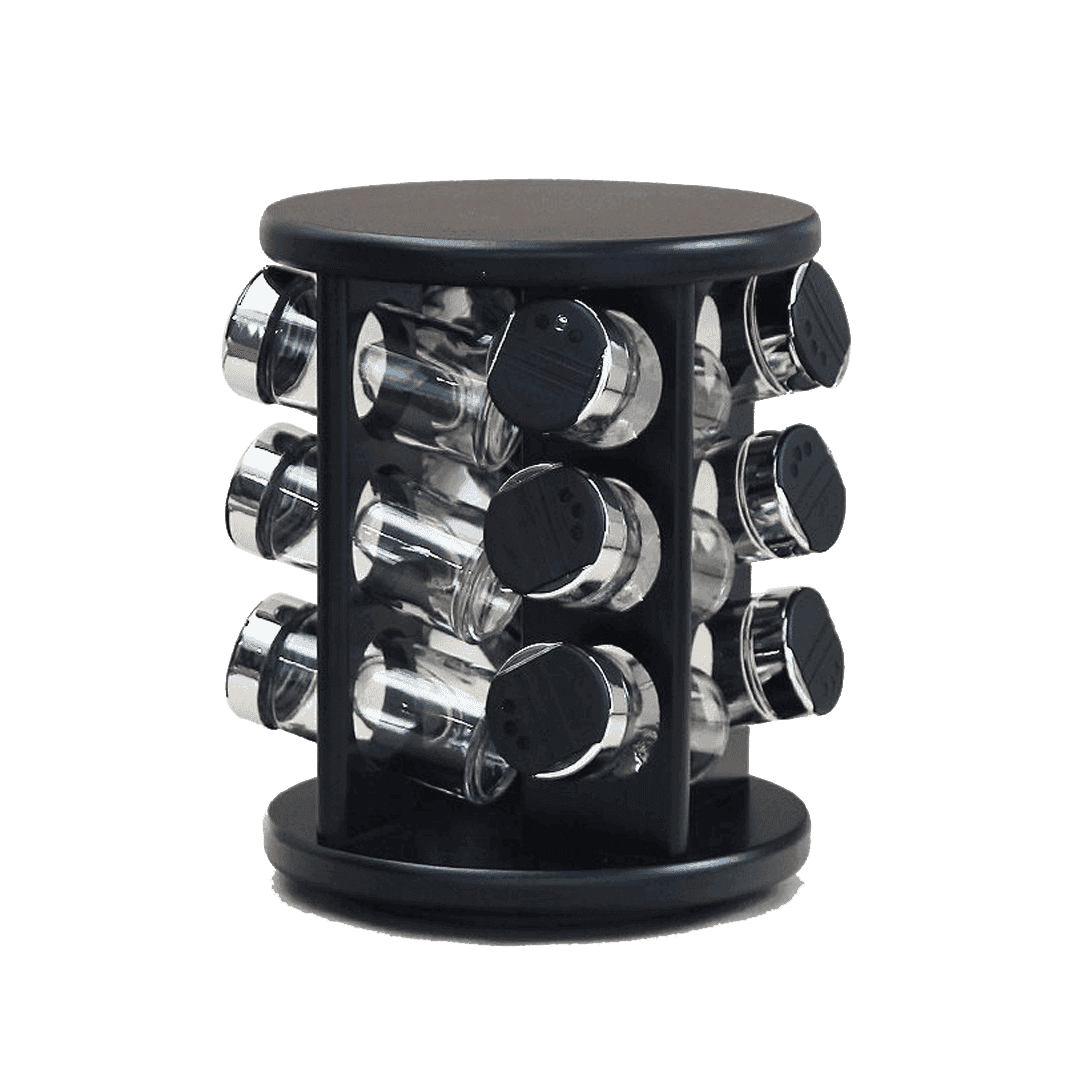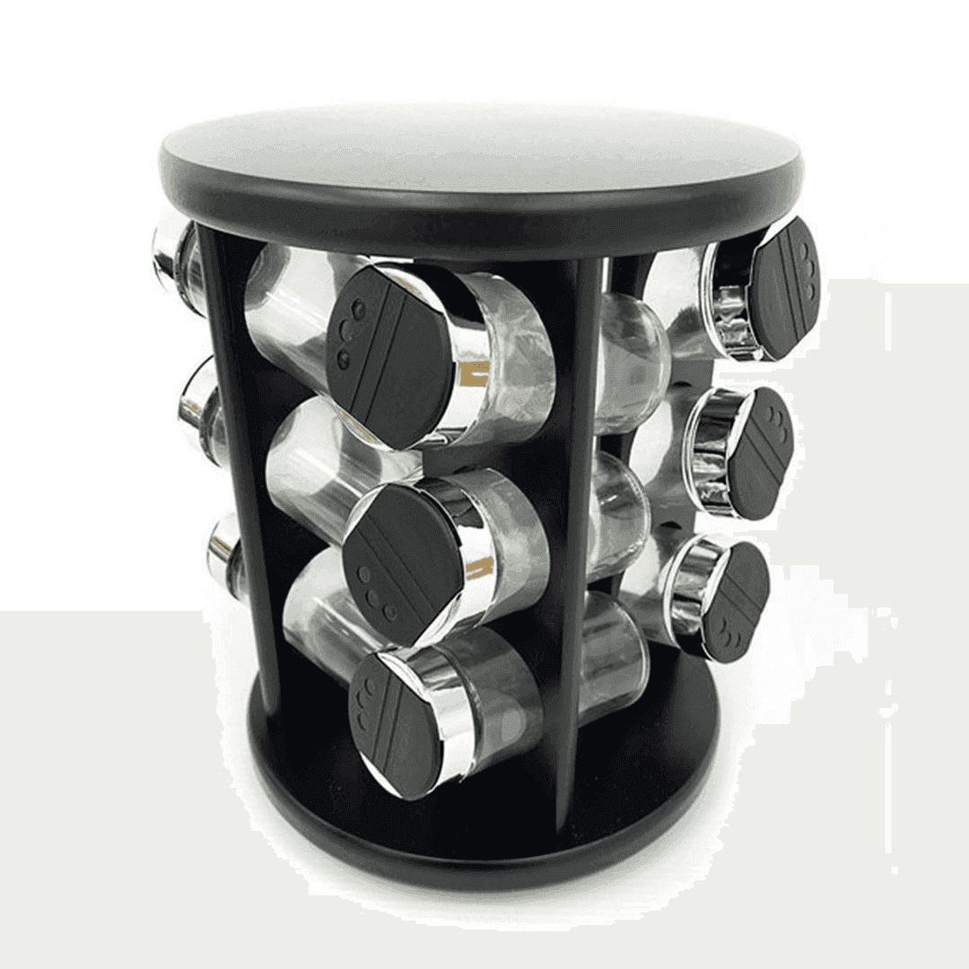 Especiero Giratorio X12 Frascos Plateado Redondo Madera C0777