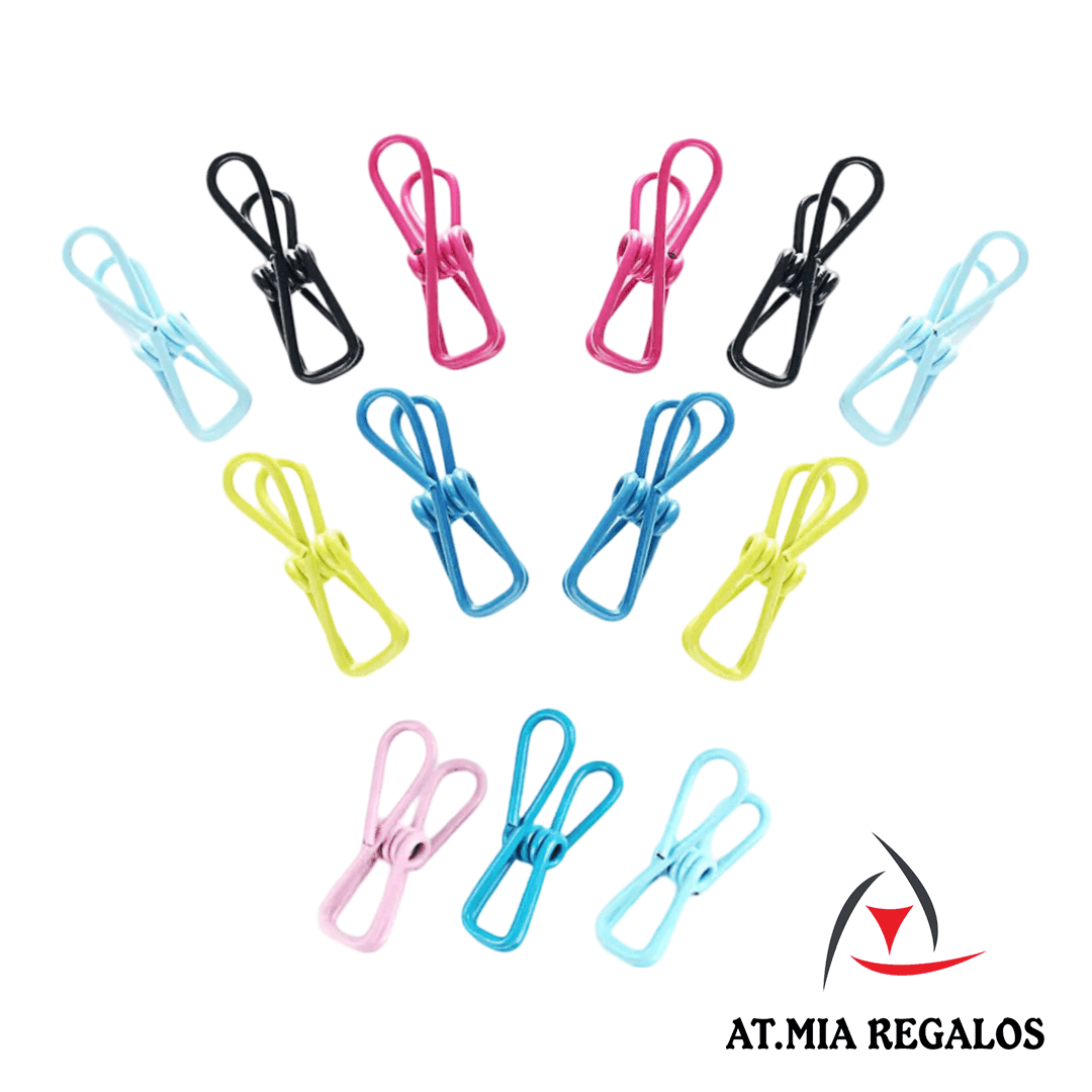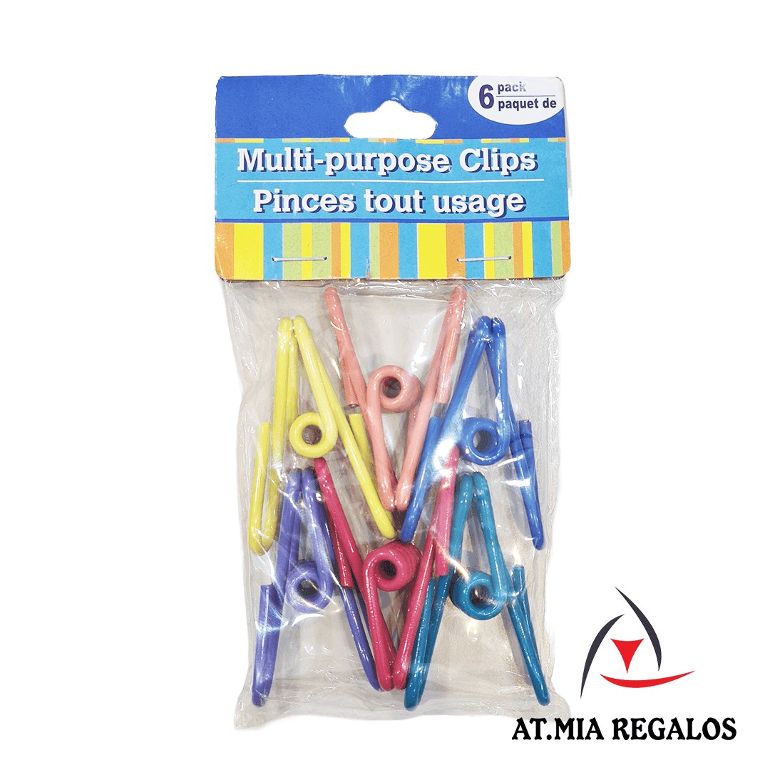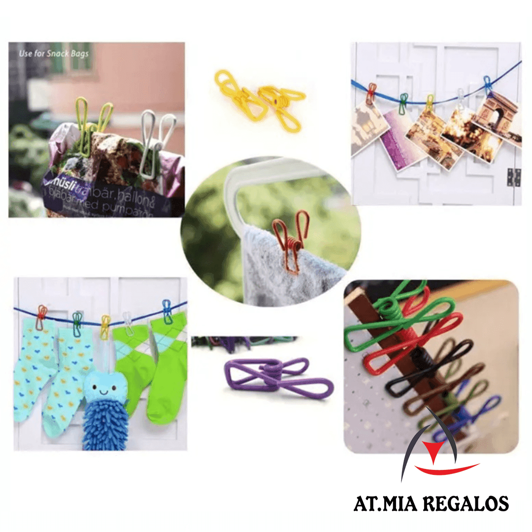 Gancho/Pinza/Clip Multiproposito Bolsas Ropa Papeles De Metal Con Recubrimiento De Vinilo Plastico x6
