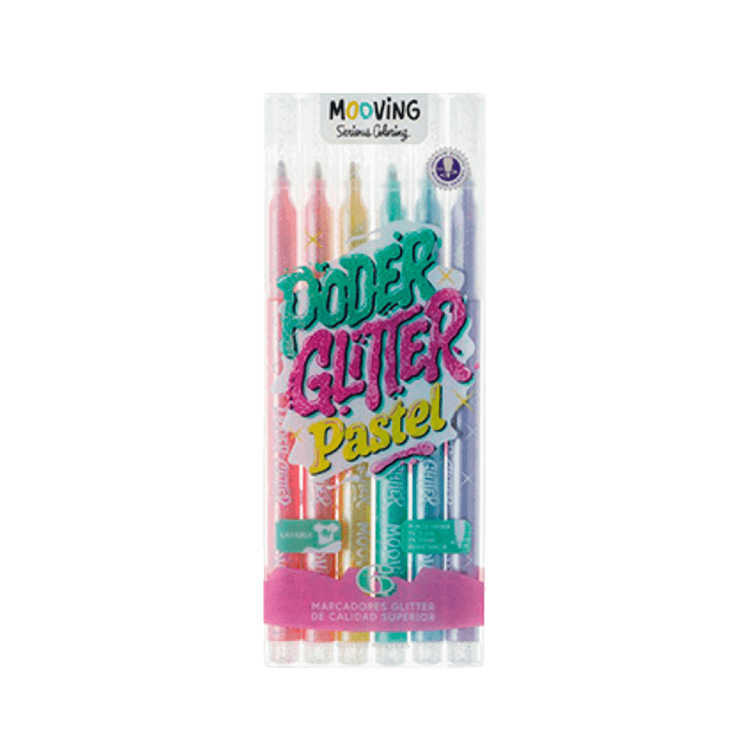 Set x6 Marcadores de Colores Mooving Poder Glitter Pastel