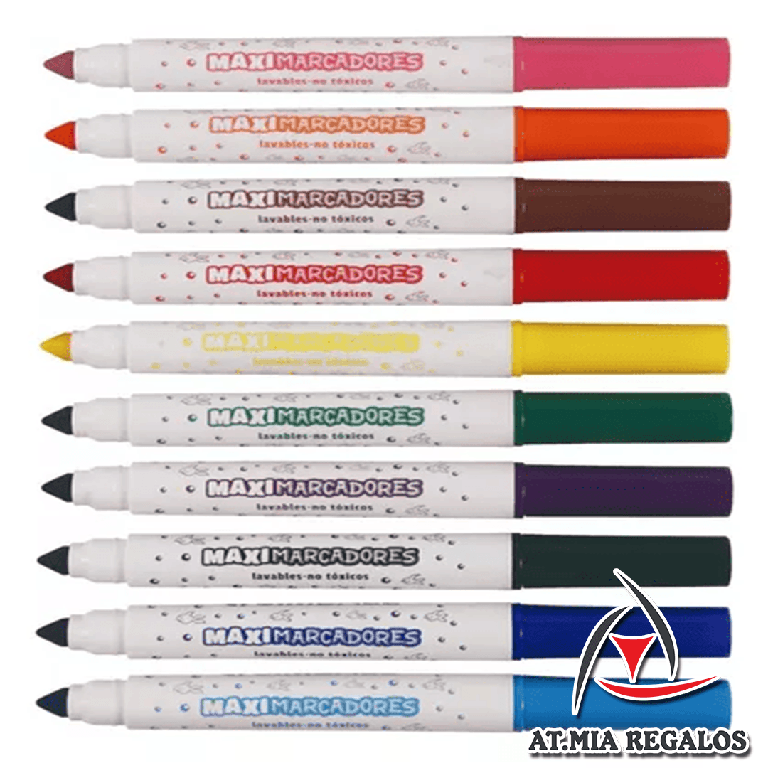 Los Maxi Marcadores De Colores X 10 Punta Cónica Simball son la elección perfecta para los pequeños artistas y los entusiastas del lettering. Con una punta cónica versátil, estos marcadores permiten realizar trazos finos y gruesos con facilidad, ofreciendo una experiencia de dibujo dinámica y creativa.