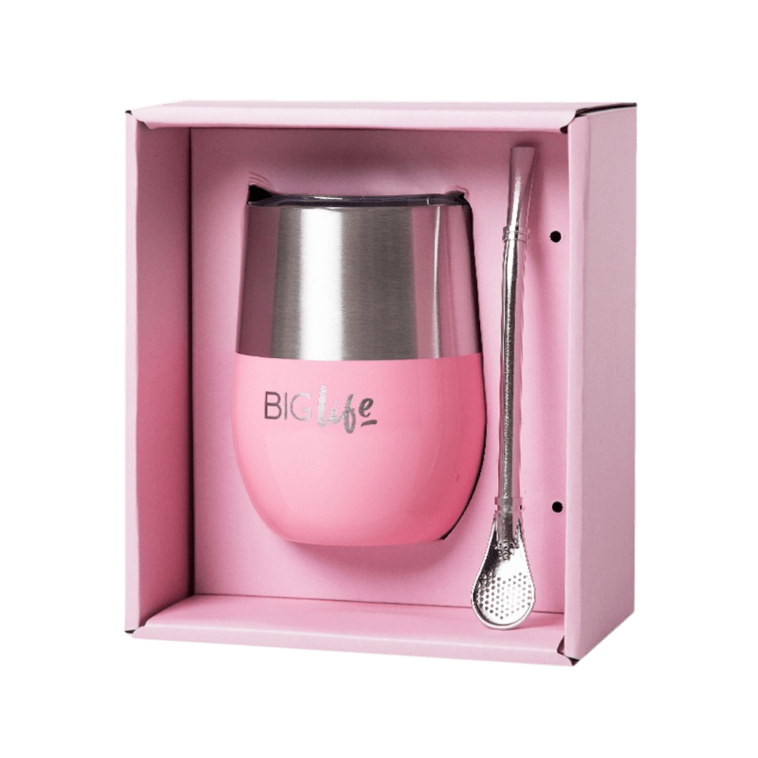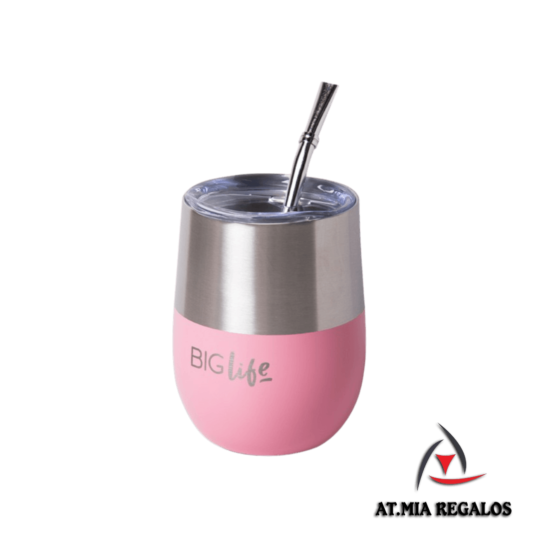 Mate Acero Inoxidable c/Tapa Y Bombilla Life Cup Biglife Rosa BigLife 350ml