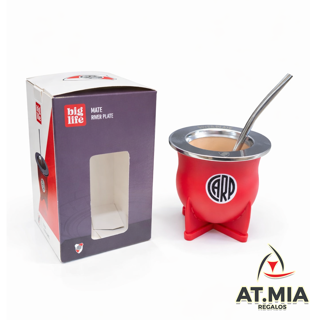 Mate Plástico BigLife Aro De Metal Grabado Y Bombilla River Plate