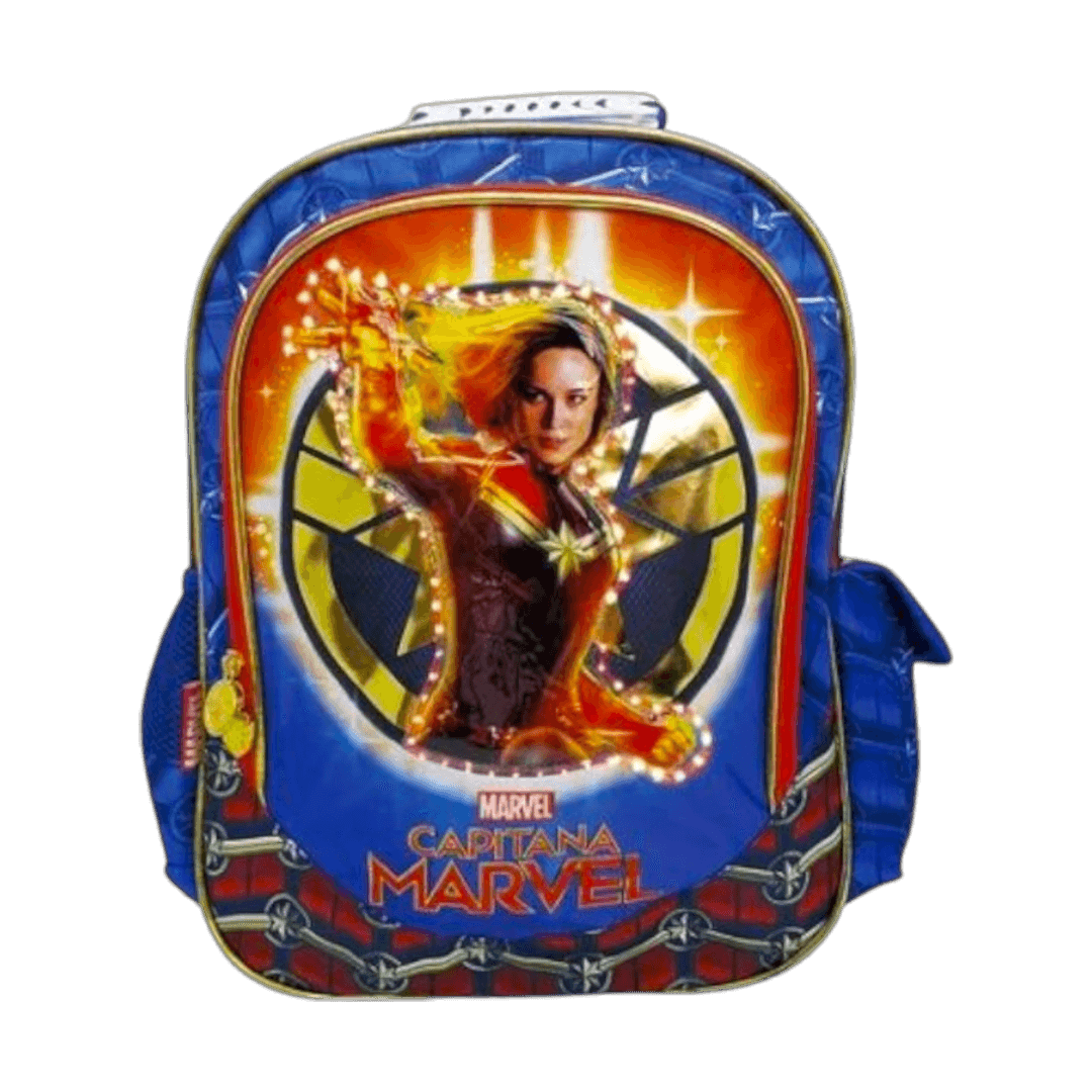 Mochila Avengers Marvel con luz, de 16 pulgadas. Con bolsillos a los costados, tiras ajustables.