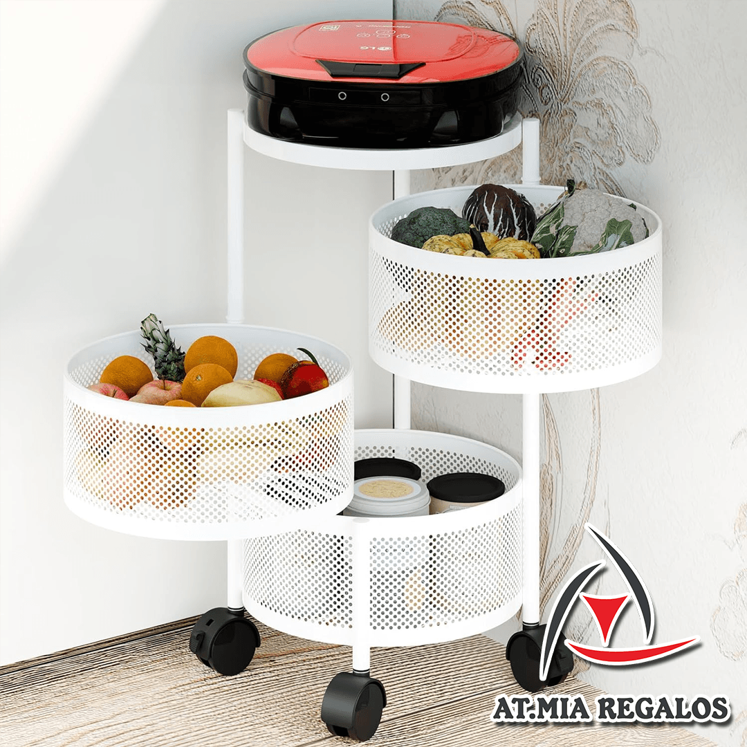 Organizador de Frutas y Verduras de Acero Inoxidable Circular 3 Pisos Blanco