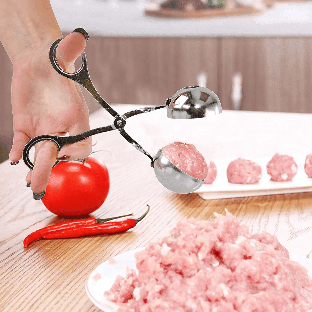 – Las pinzas albóndigas de acero inoxidable, rápidamente forma y suelta albóndigas, ahorra tu tiempo.