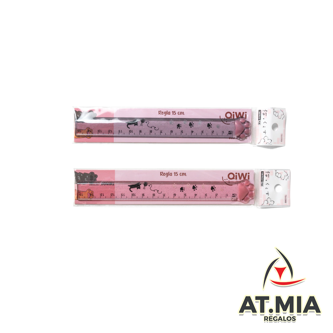 Regla Qiwi Geométrico Kawai Huellita 15cm
