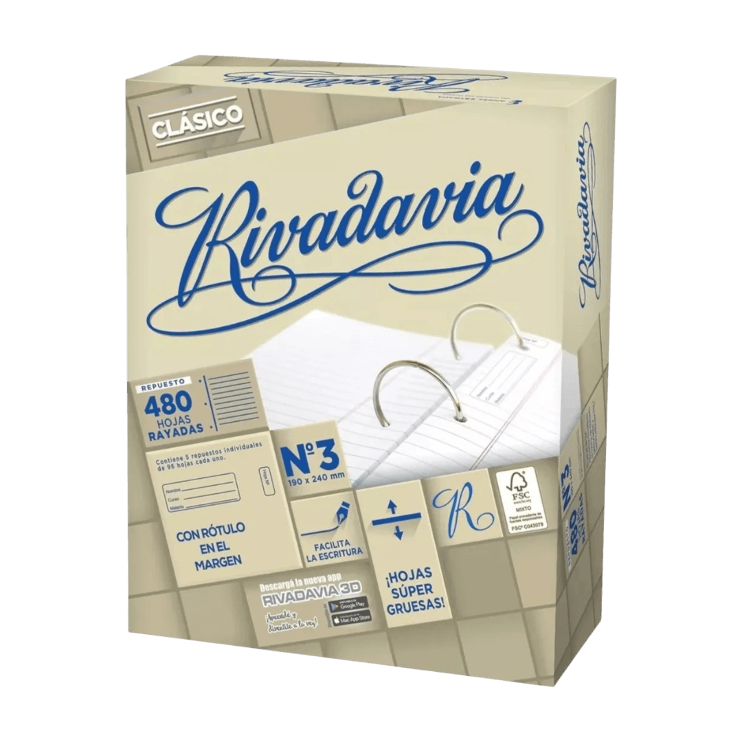 Repuesto Hojas Rivadavia Clásico 480 Hojas Rayadas
