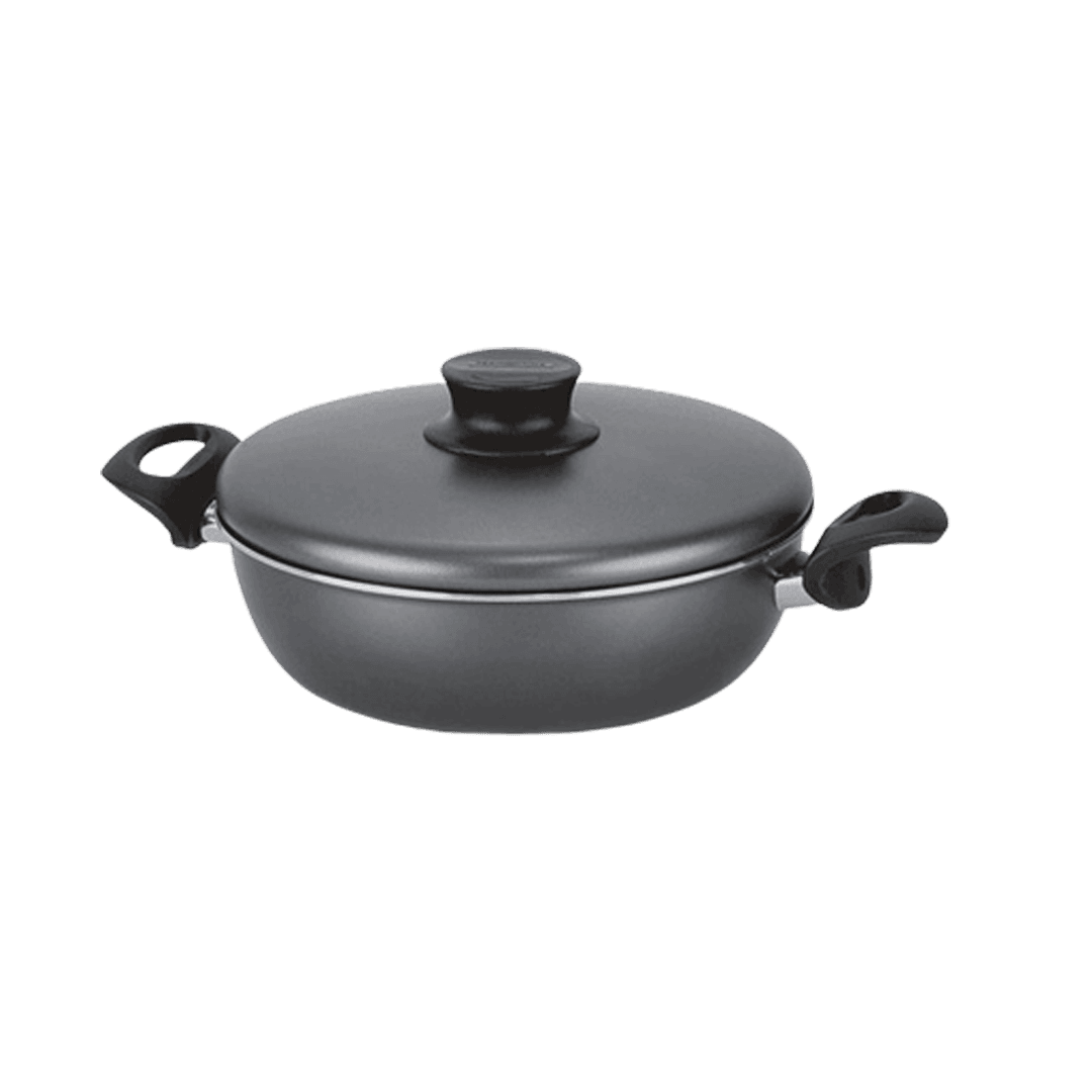 Sartén marca Tramontina Paris de Aluminio con Revestimiento Antiadherente Starflon Max con Tapa de Aluminio Grafito. Viene en el moderno color grafito y se fabrica en aluminio con revestimiento interno y externo de antiadherente Starflon Max, material que permite una cocción más rápida y uniforme, además de facilitar la limpieza, ya que los alimentos no se pegan a su superficie. Además, las asas de baquelita antitérmica y el pomo de nylon protegen tus manos durante el manejo, porque reducen la propagación de calor.