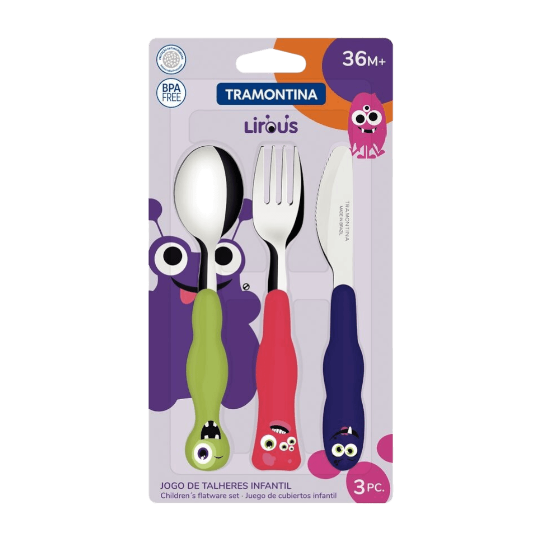 Set x3 Cubiertos Acero Inoxidable Niños Lirous 23797/910 Tramontina