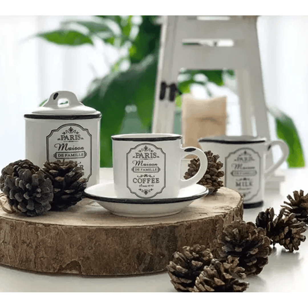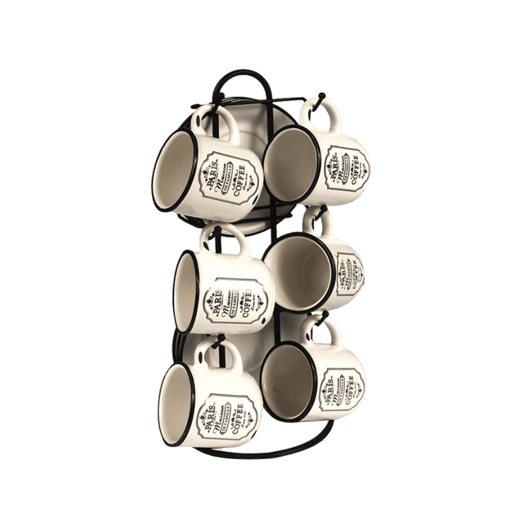Set x6 Tazas de Cerámica c/Plato Y Base Organizador Paris Vintage Maison 95ml