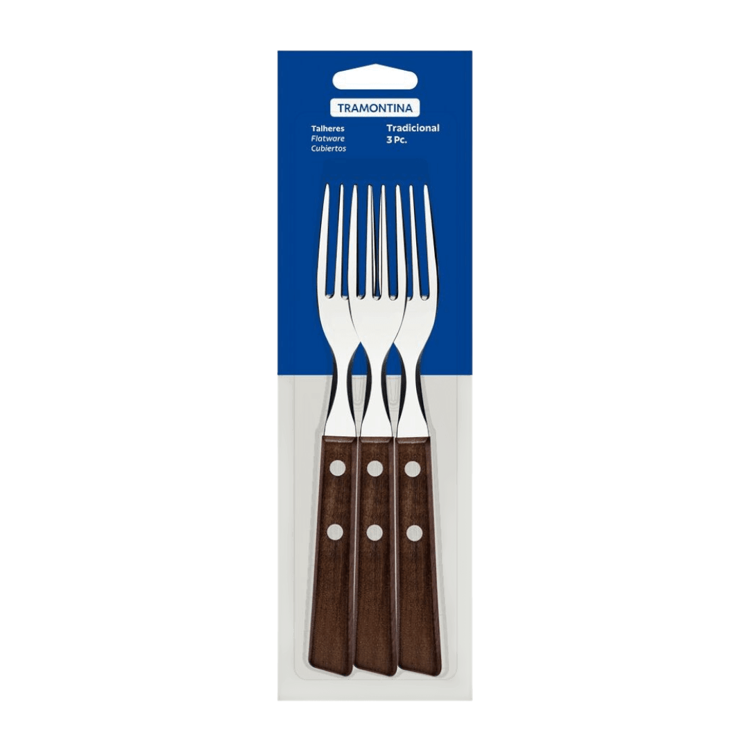 Tenedores Tramontina Tradicional con láminas de acero inoxidable y mangos de madera natural obtendrá los cubiertos ideales para utilizar tanto en asados como para cortar y pelar frutas diariamente.