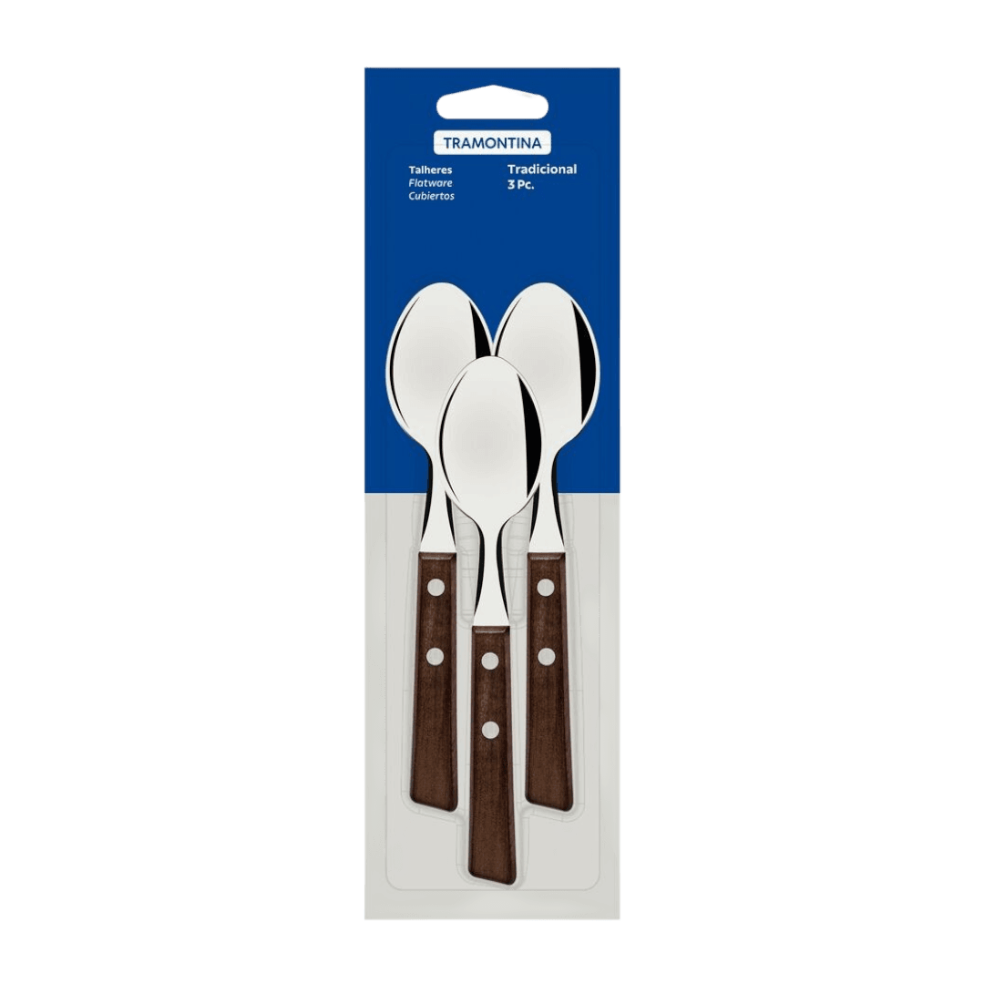 Cucharitas Tramontina Tradicional con láminas de acero inoxidable y mangos de madera natural obtendrá los cubiertos ideales para utilizar tanto en asados como para cortar y pelar frutas diariamente.