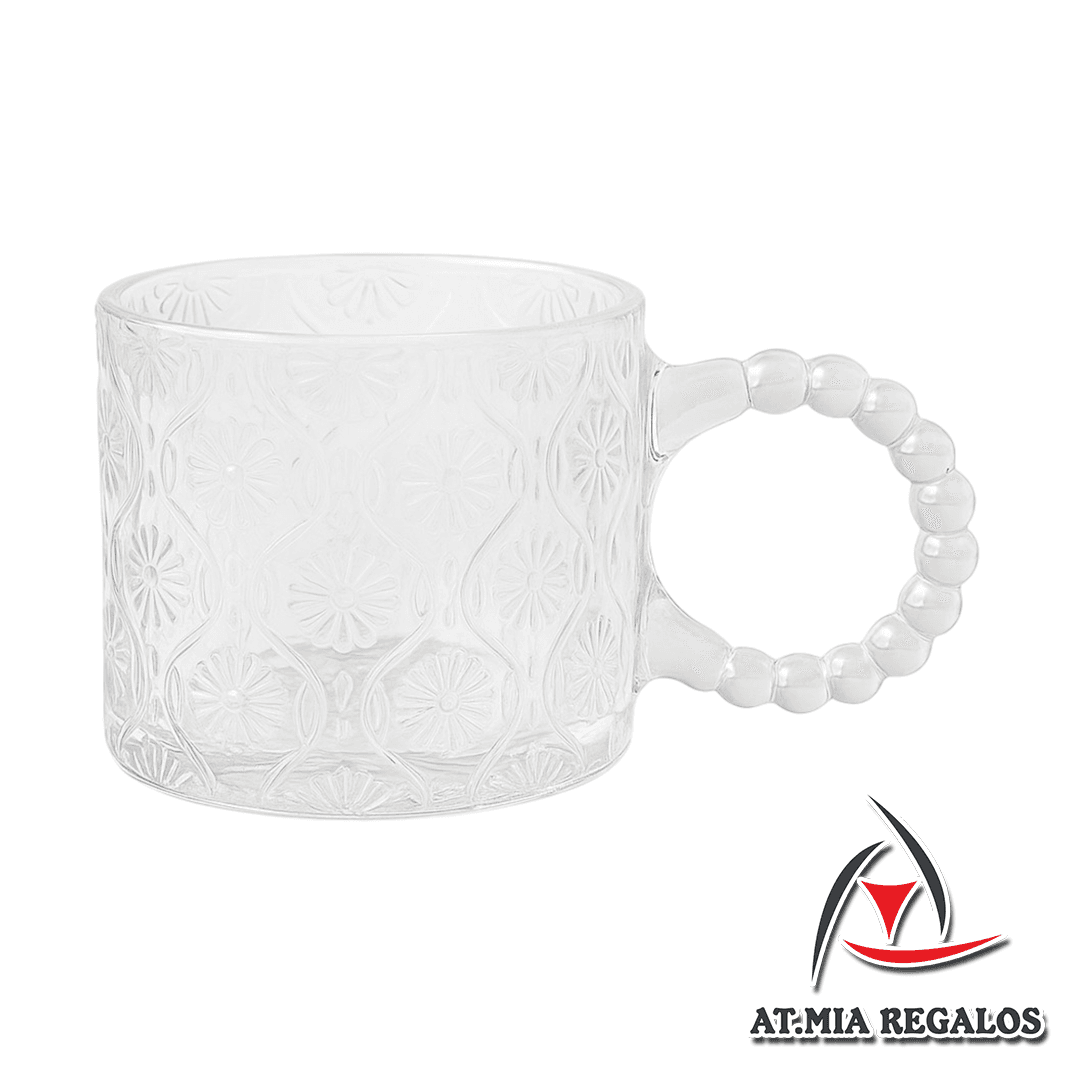 Set x6 Tazas de Vidrio C/Manija Circular Diseño Flores Tornasolado 320ml