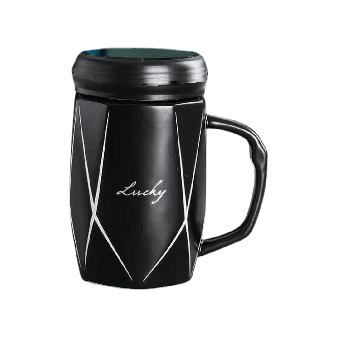 Taza de Cerámica c/Tapa Y Espejo Diseño Lucky 500ml