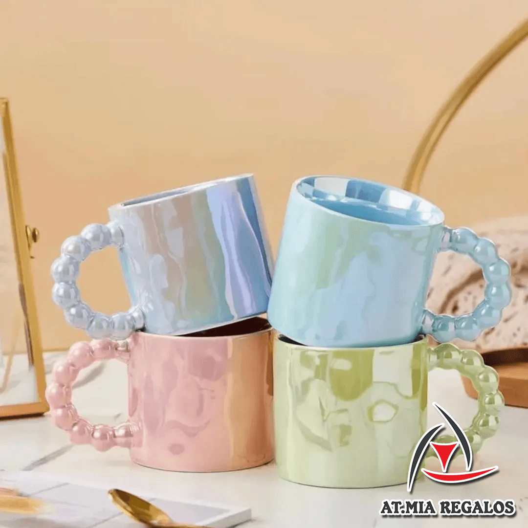 Taza de Cerámica Colores Pastel Con Asa de Perlas 350ml