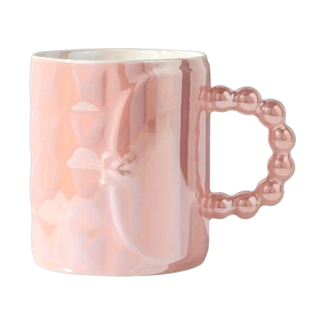 Taza de Cerámica Colores Pastel Con Asa de Perlas 400ml