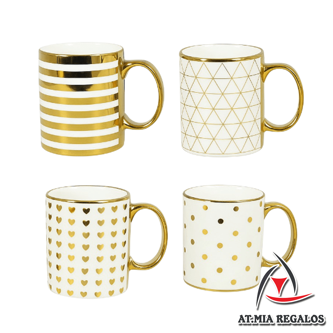 Taza de Cerámica Con Detalle Dorados Diseño Surtidos 330ml