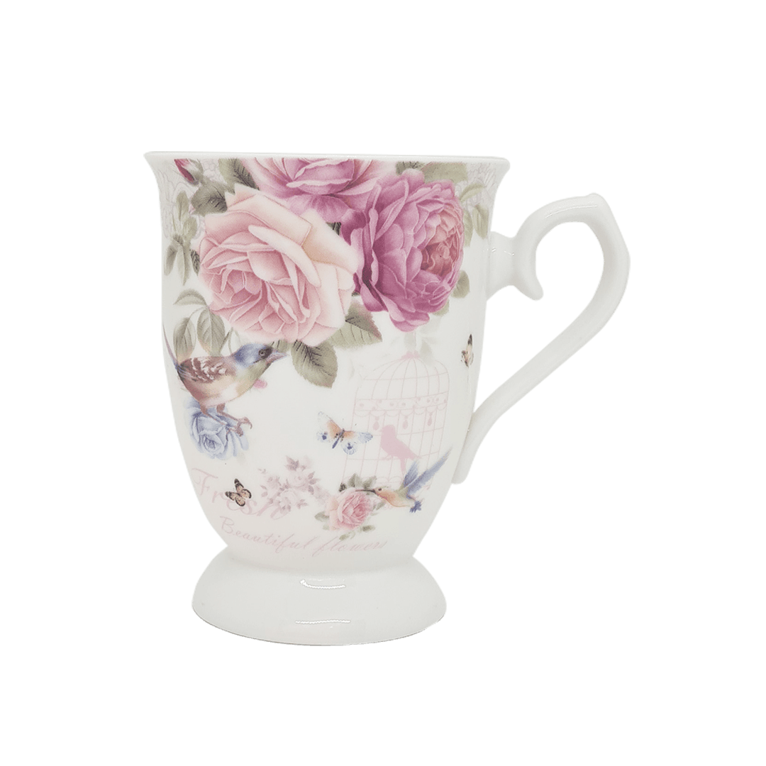 Taza de Cerámica Con Estuche/Caja Para Regalo Diseño Flores Canario 300ml