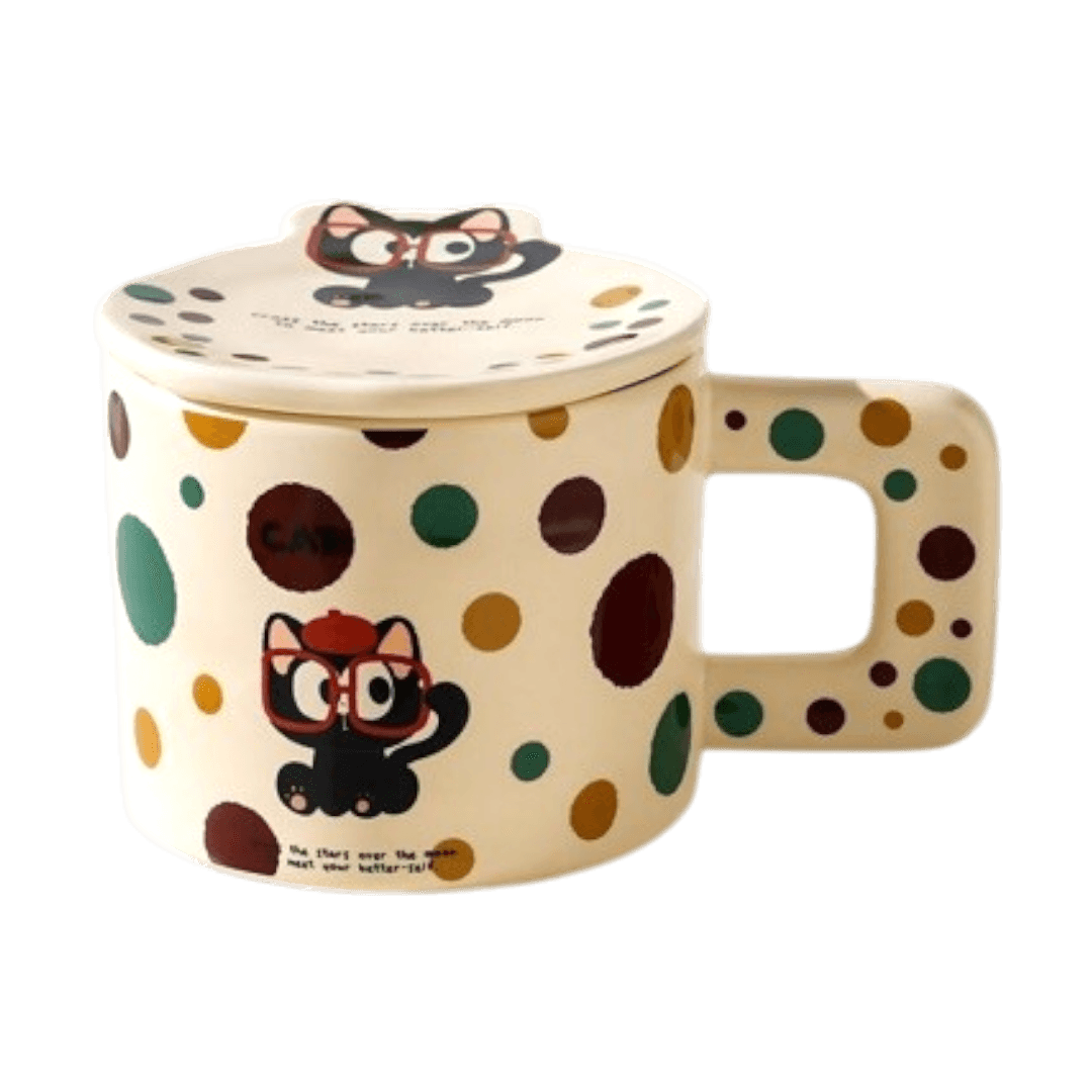 Taza de Cerámica Con Tapa Gatito Curioso 350ml