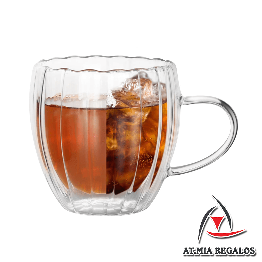 Taza de Doble Vidrio Café C/Asa Diseño Acanalada 200ml
