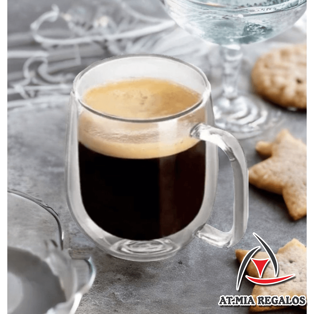 Taza de Doble Vidrio Café Fondo c/Asa Transparente 250ml
