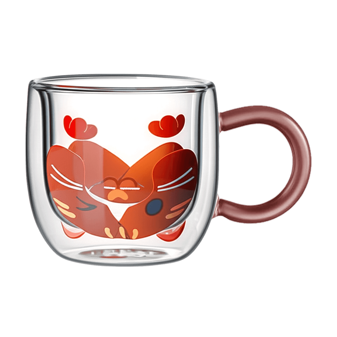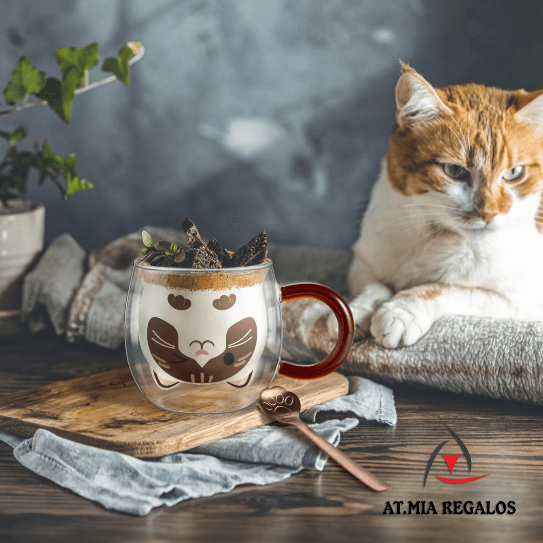 Taza de Doble Vidrio con Diseño Gato c/Asa Color 280ml