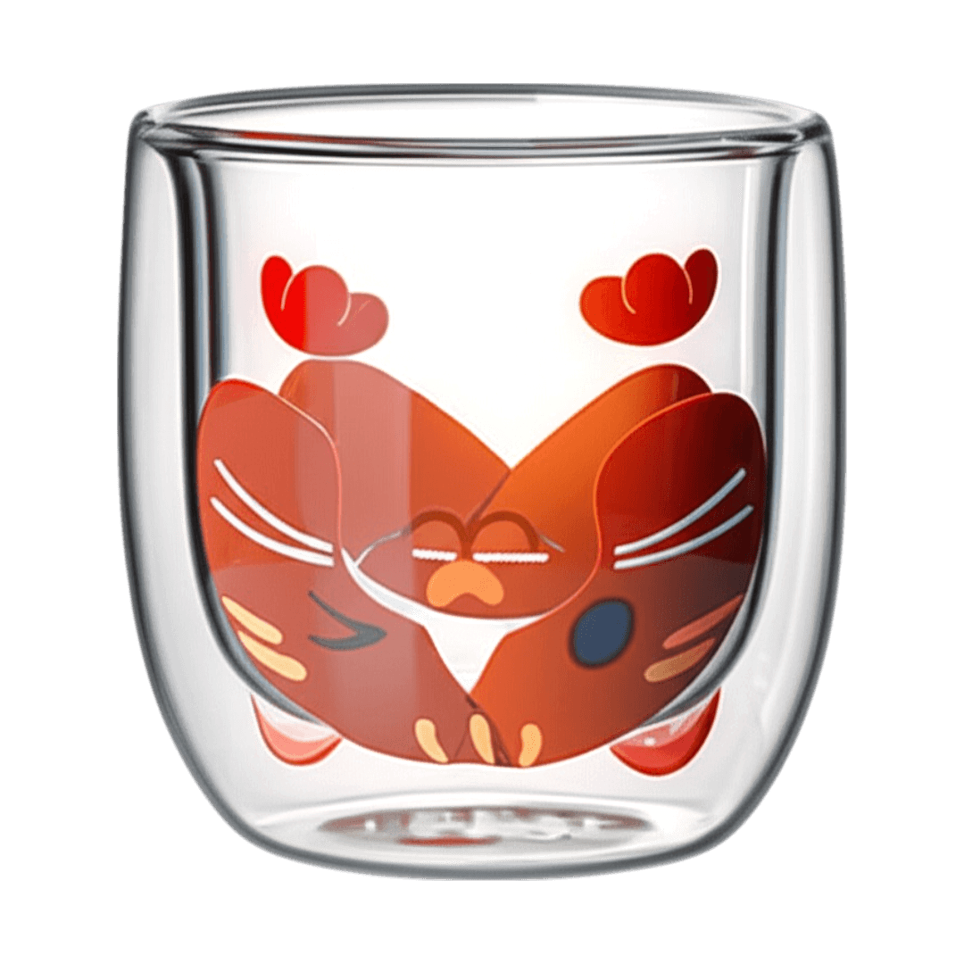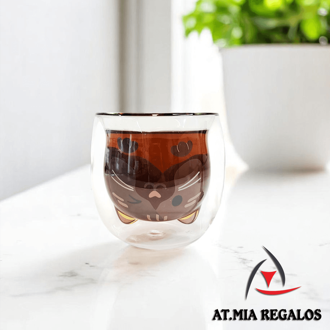 Taza de Doble Vidrio con Diseño Gato Sin Asa Color 280ml