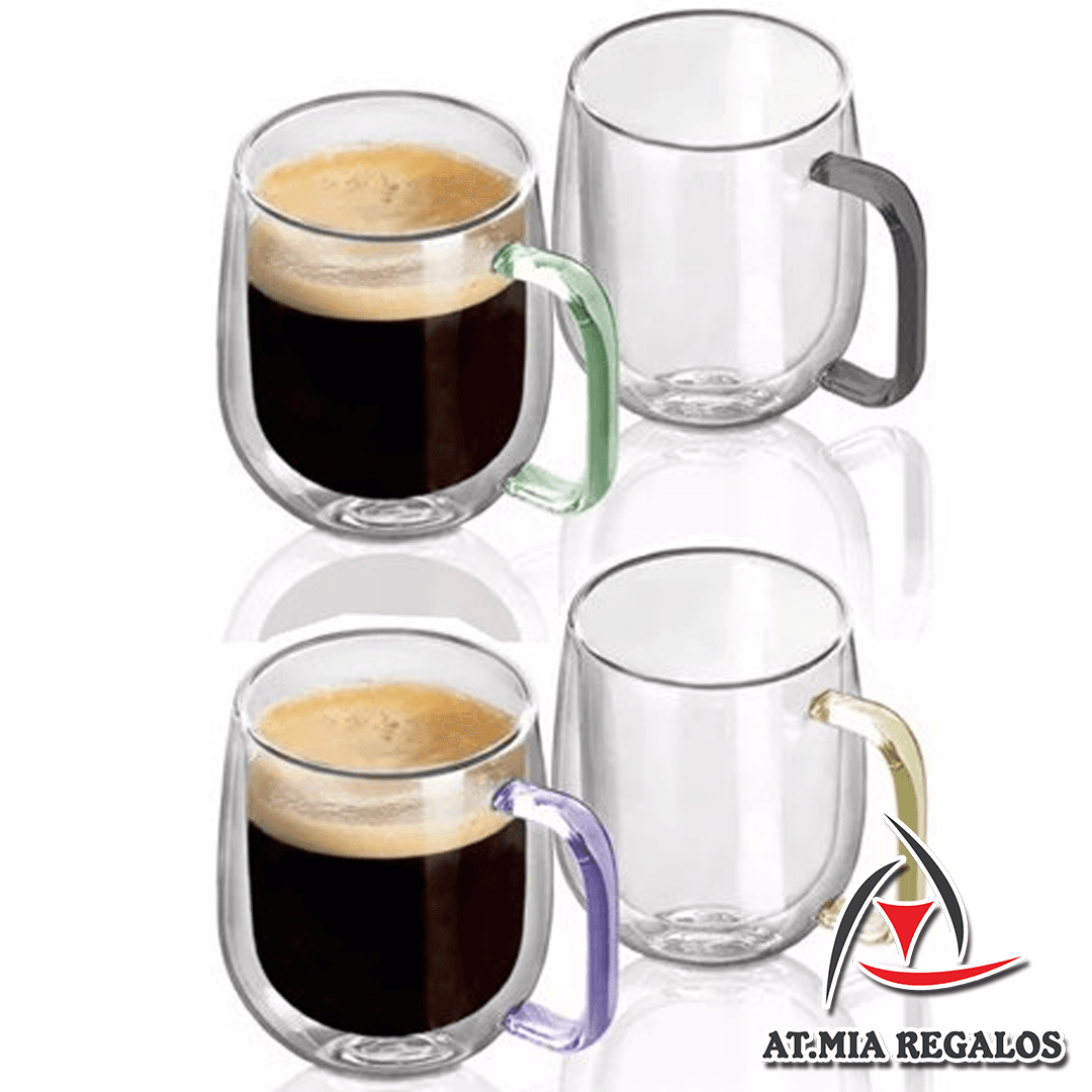 Taza de Doble Vidrio Café Fondo c/Asa Colores Surtidos 300ml