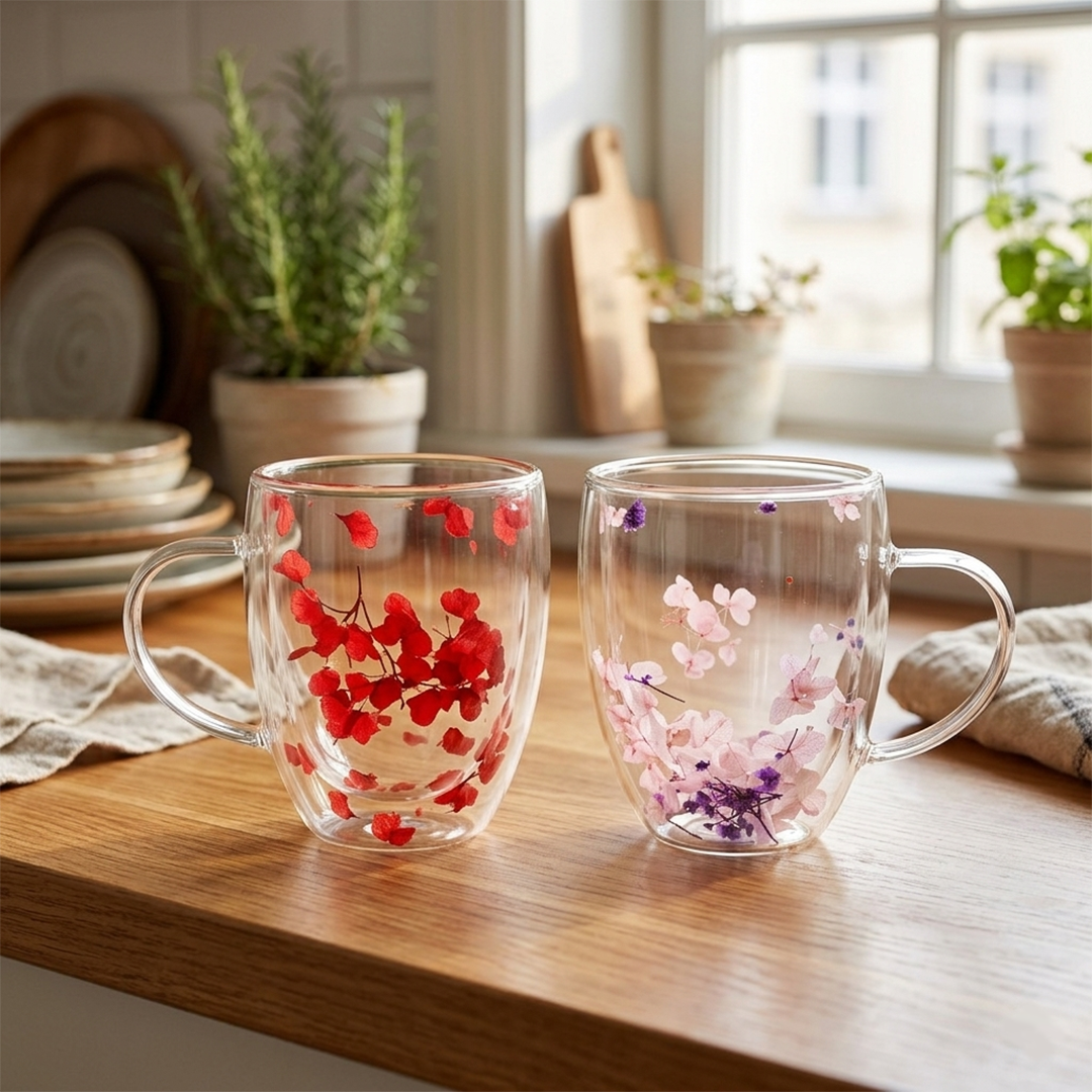 Material resistente: saborea el rico aroma de tu café con nuestras exquisitas tazas de vidrio incrustadas con flores secas. Hechas de vidrio, estas tazas son de una calidad irrompible, lo que garantiza una experiencia de café inmejorable.