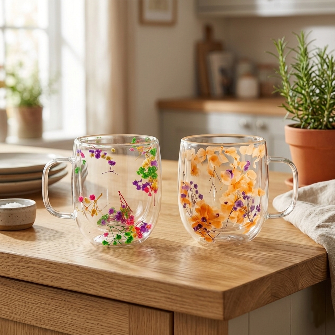 Taza de Doble Vidrio Flores 350ml