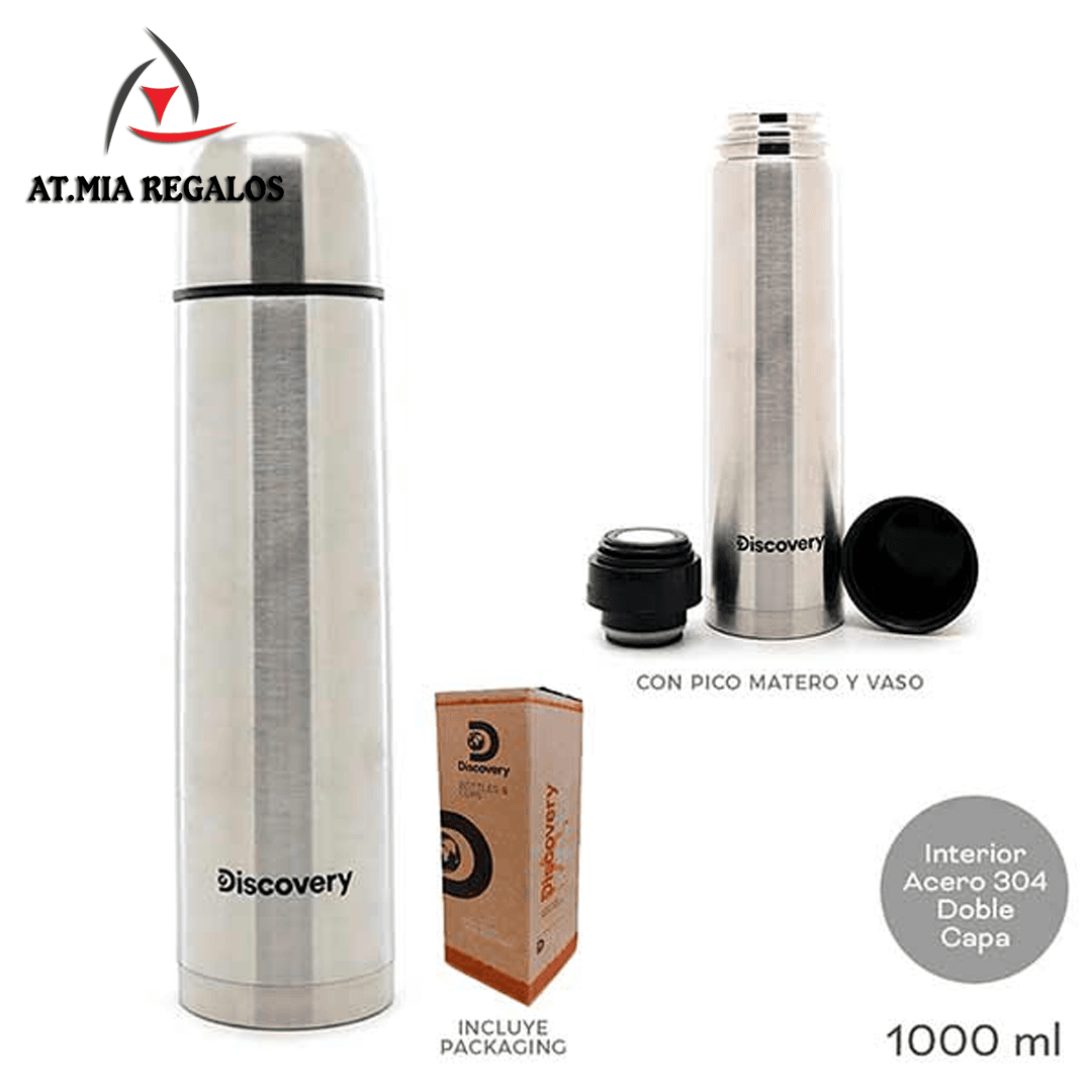 Termo Acero Inoxidable Bala Plateado Discovery 1000ml