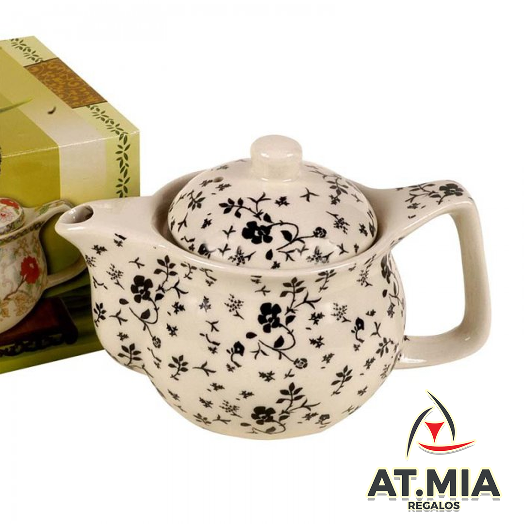 Tetera de Porcelana 500ml Flores Negras