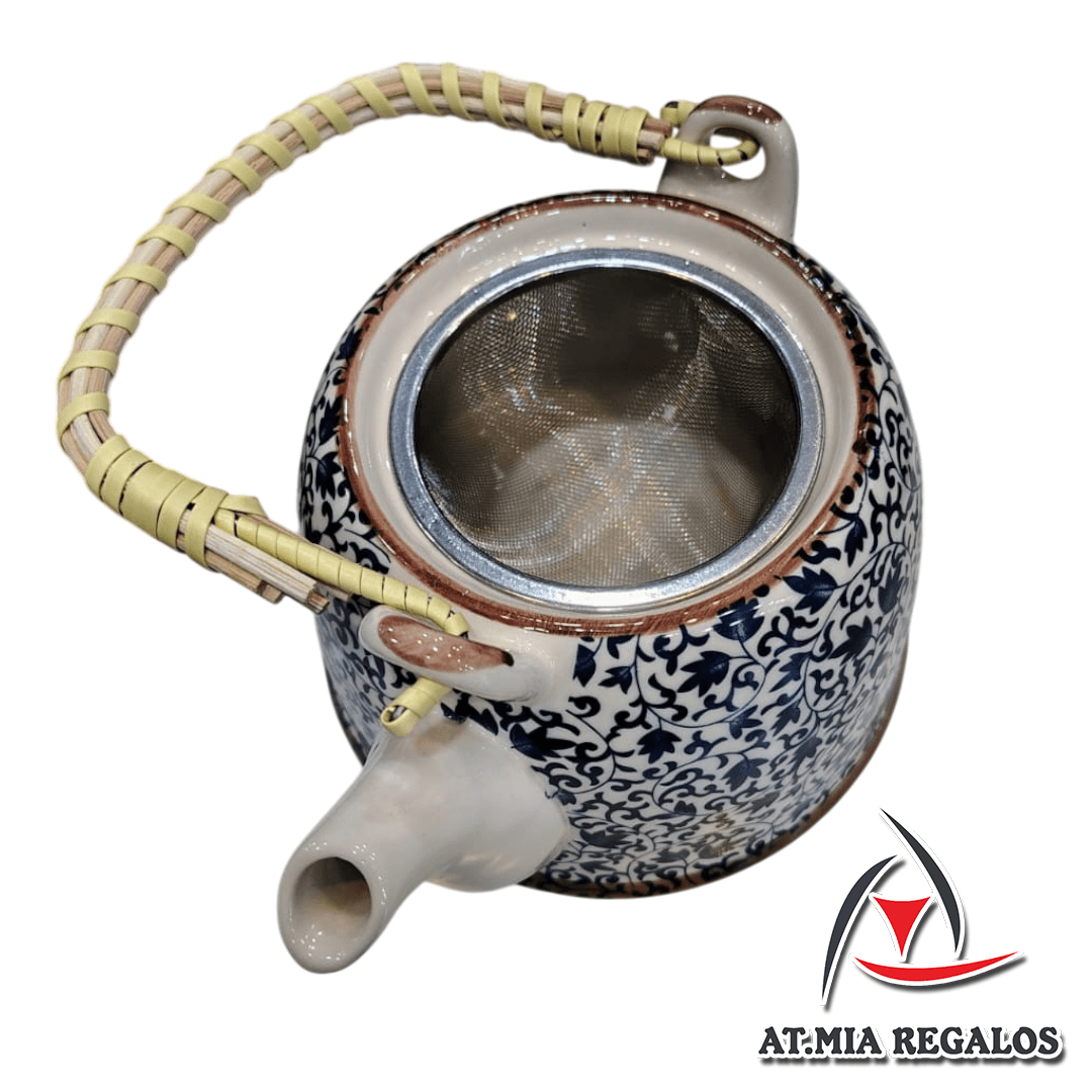 Tetera de Porcelana 800ml c/Filtro Infusor Diseño Ramas Azules