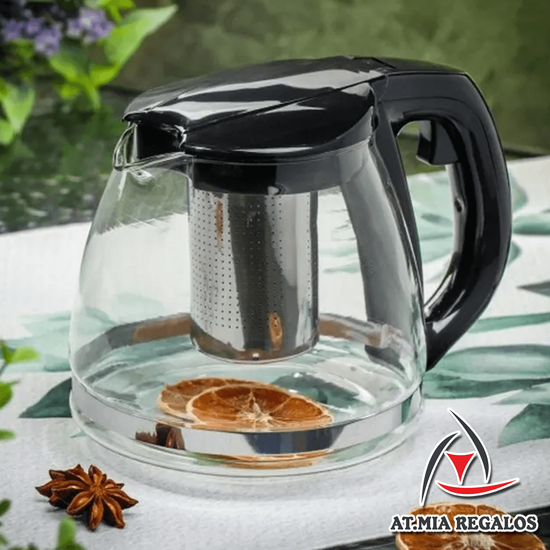 Tetera de Vidrio 1600ml c/Filtro Infusor Manija Negro