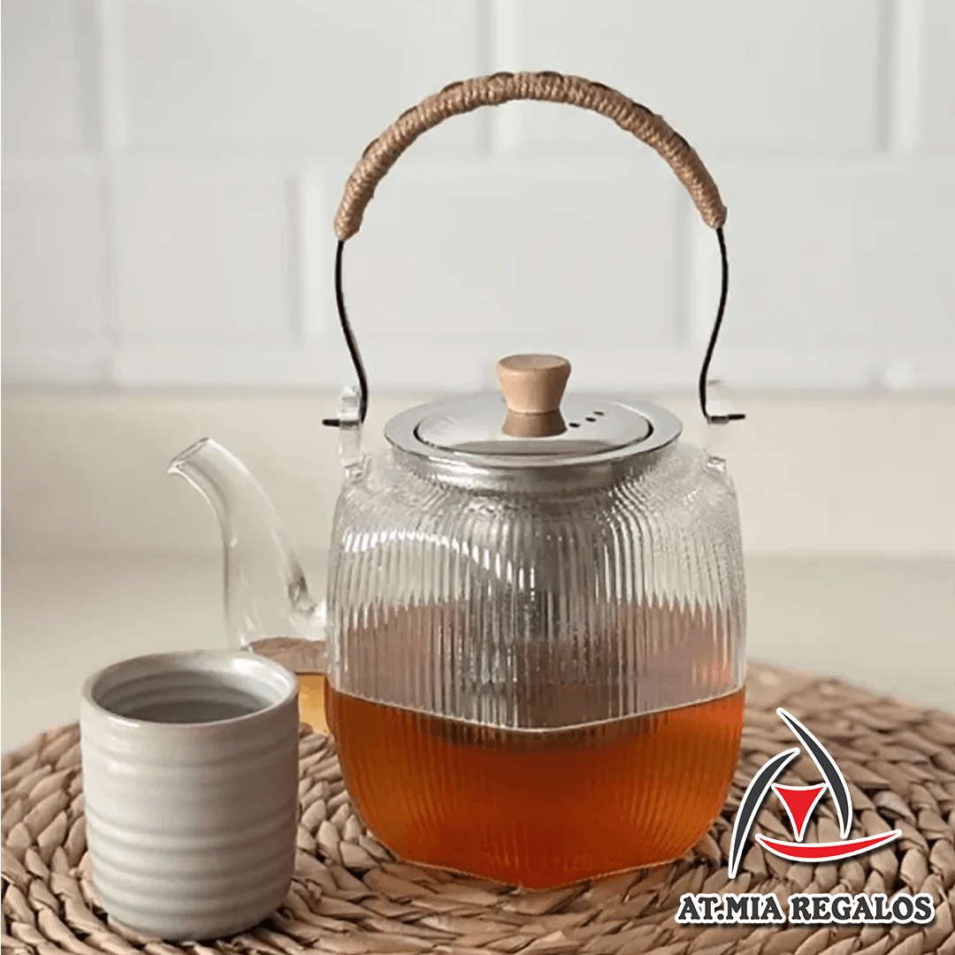Tetera de Vidrio 1L c/Filtro Infusor Cónico Mango Cuerda Cuadrada