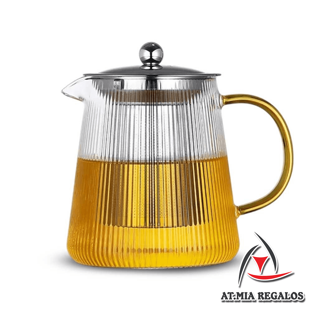 Tetera de Vidrio 500ml c/Filtro Infusor Rayas Finas