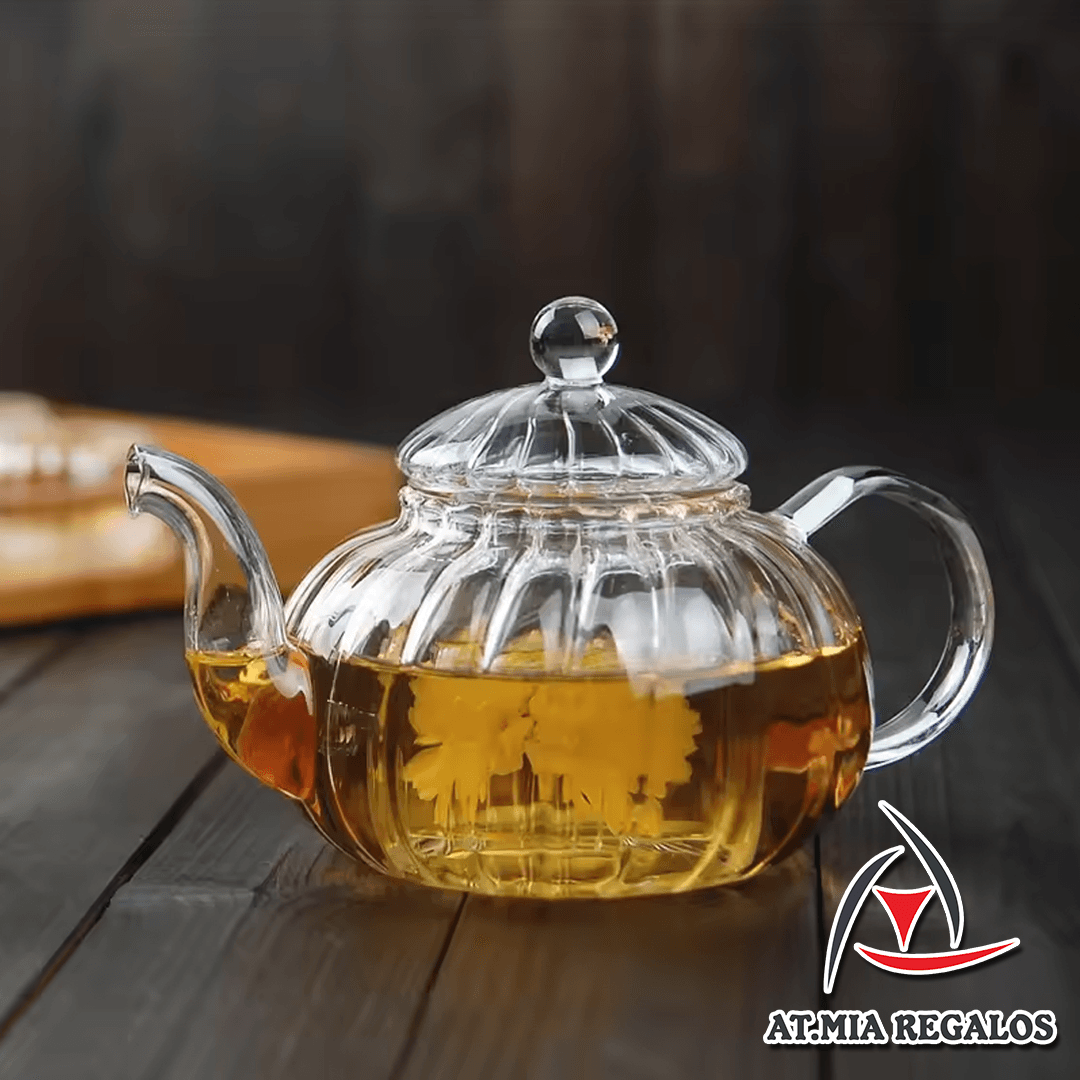 Tetera de Vidrio 700ml c/Filtro Infusor Vidrio Rayas