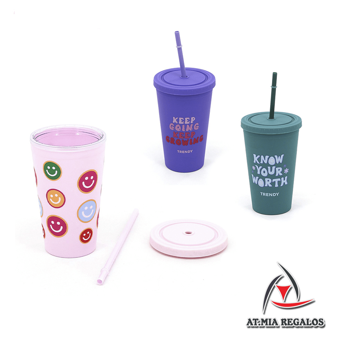Vaso de Plástico c/Sorbete 18523 Trendy 450ml