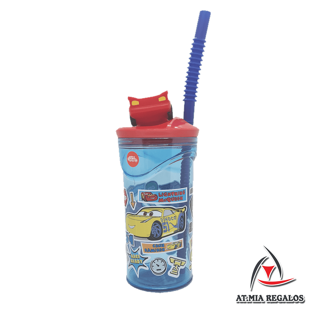Vaso de Plástico Cresko c/Tapa Y Sorbete Cars EC039 360ml