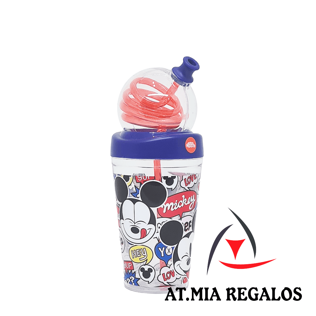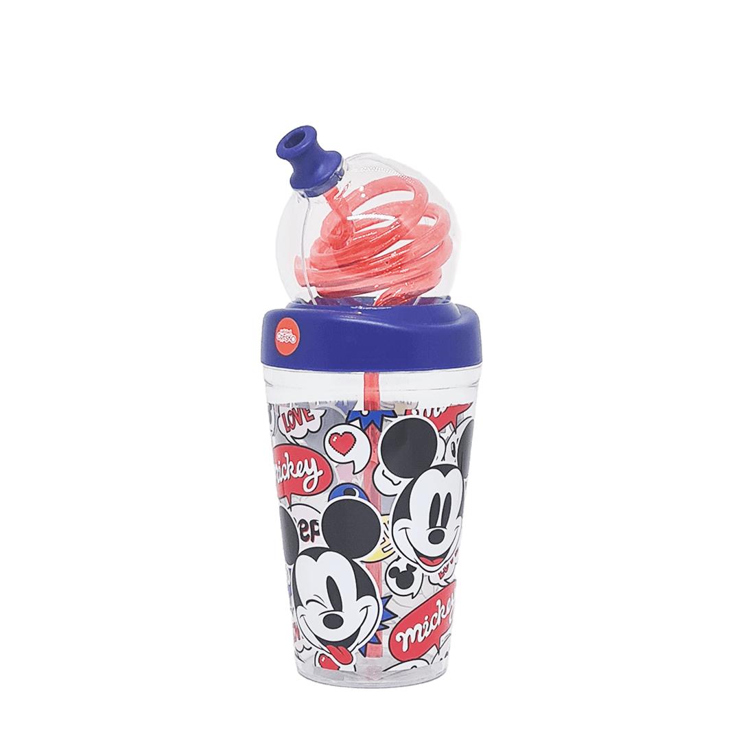 Vaso de Plástico Cresko Espiral c/Tapa Y Sorbete KM559 Mickey 420ml