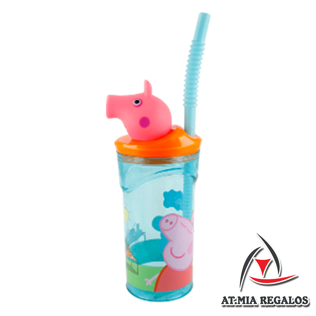 Vaso de Plástico Wabro c/Tapa Y Sorbete 1348 Peppa Pig 360ml