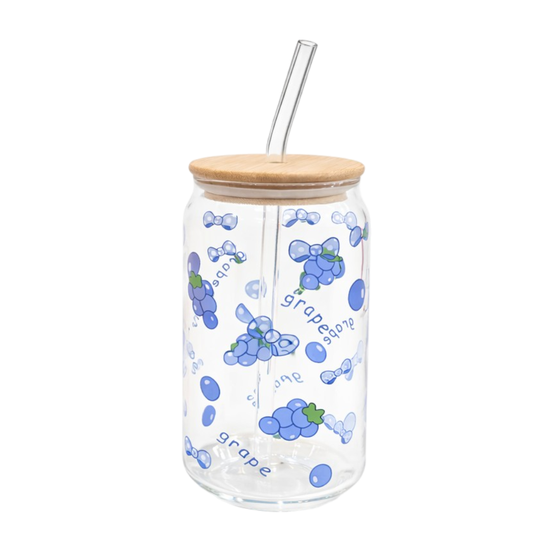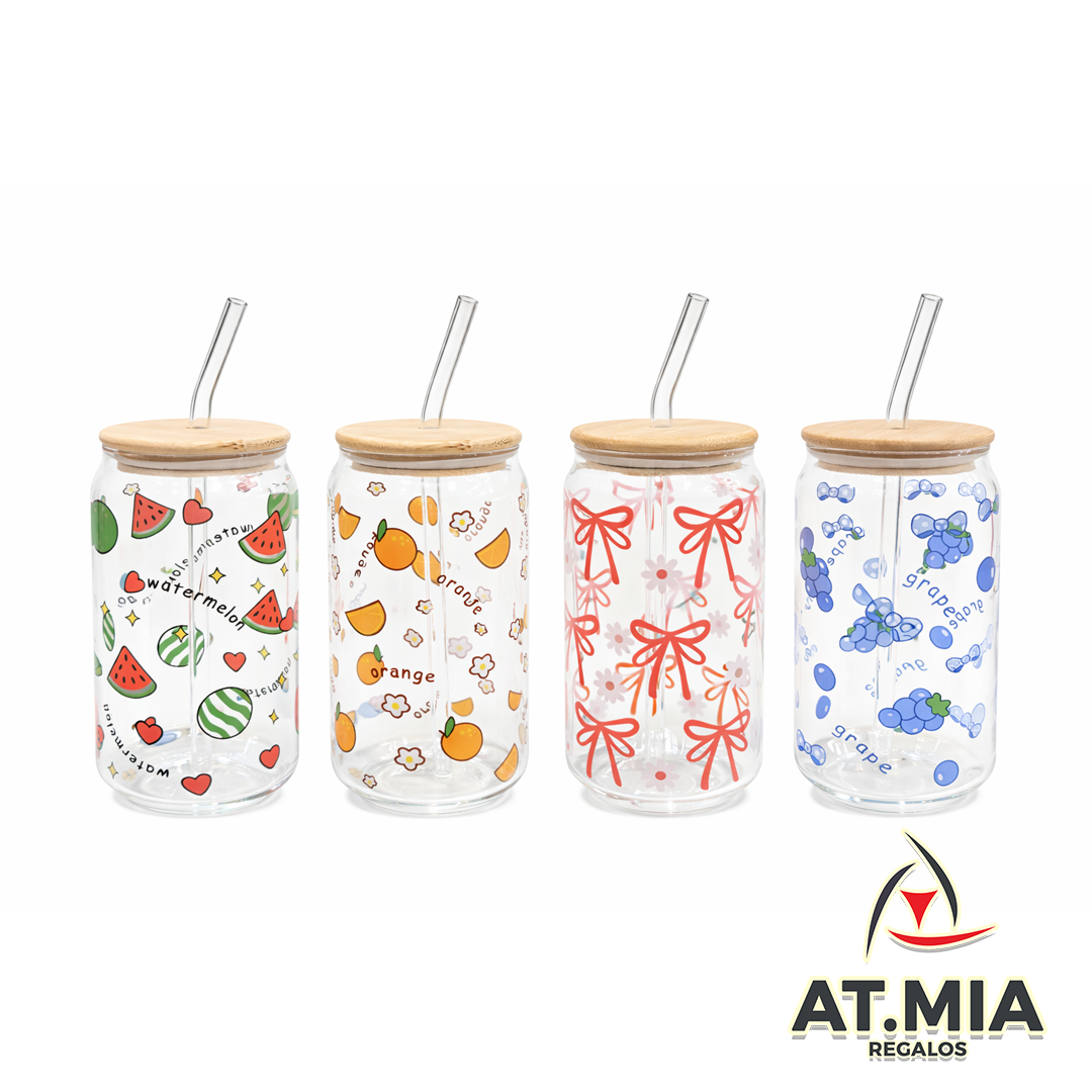 Vaso de Vidrio Con Tapa Bambú + Sorbete 500ml